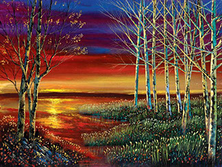 Now he’s arrived at what he believes to be his true destiny. “I’m grateful every day that I get to paint for a living,” Smith says, “I feel like the luckiest guy on earth, and I think that energy and optimism is reflected in my work.” Ford resides in Roswell, Georgia with his wife, Cristi, along with their two dogs and two cats. Their adored, 23 year old daughter, Hilary, also lives in Atlanta and is a talented, burgeoning filmmaker. Their son, Brian, also lives in Atlanta with his wife, Adrienne and their beautiful little girl Nora.